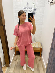 Soft, warm, and perfectly festive — this brushed-cozy pajama set is made for slow winter mornings and holiday movie nights. The relaxed tee and wide-leg pants feel buttery soft and lightweight, giving you that “wrapped in a blanket” comfort without the bulk. Pour the hot cocoa, turn on the Christmas lights, and settle in.