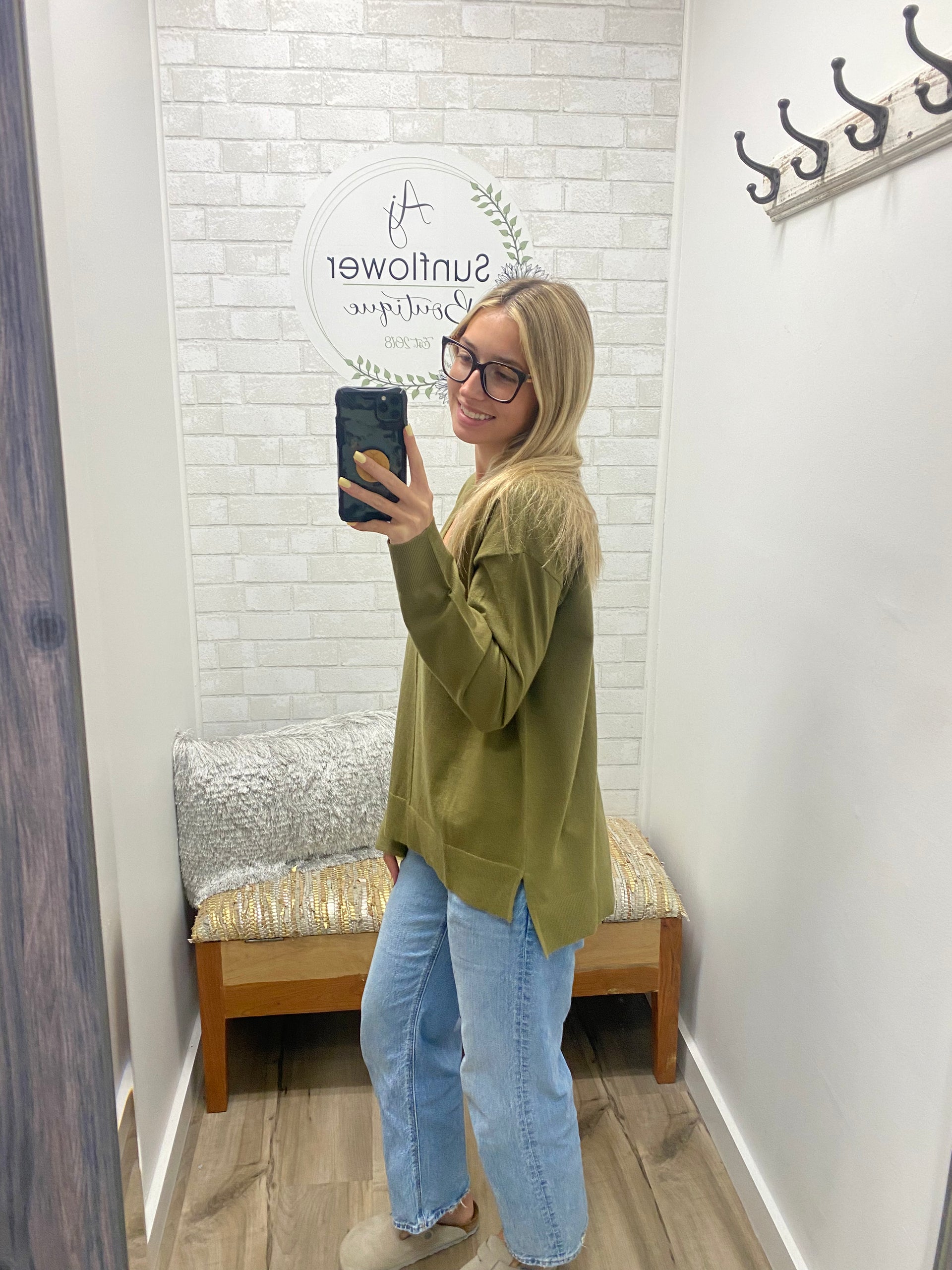 The All Seasons Sweater is the ultimate fall essential—relaxed, cozy, and easy to style. With its flattering V-neckline, soft knit feel, and effortless fit, this sweater is perfect for layering over a tank or plaid shirt, or wearing on its own for a laid-back look. Whether you’re running errands, grabbing coffee, or heading to a fall outing, this sweater brings comfort and style to every day.
