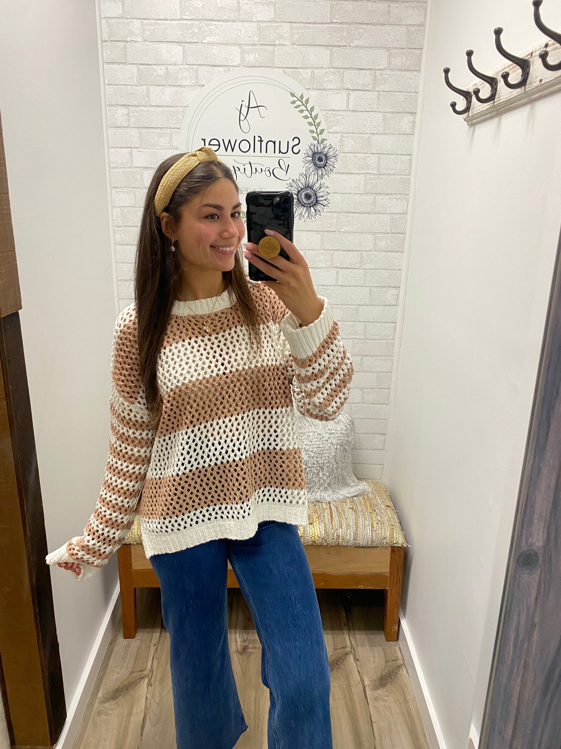 Lightweight, breezy, and oh-so beachy—our Salt & Surf Striped Sweater is made for golden hour hangs and salty air strolls. With a relaxed fit and open-knit stripe design, it layers perfectly over tanks or swimwear.