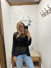 Embrace the seaside charm of our Coastal Breeze Mesh Knit Sweater. This versatile beauty, with a boat neck and bell sleeves in a crochet mesh design, exudes a breezy elegance. Wear it on the shoulder, off the shoulder, or as a boat neck – a perfect blend of style and versatility for any occasion.