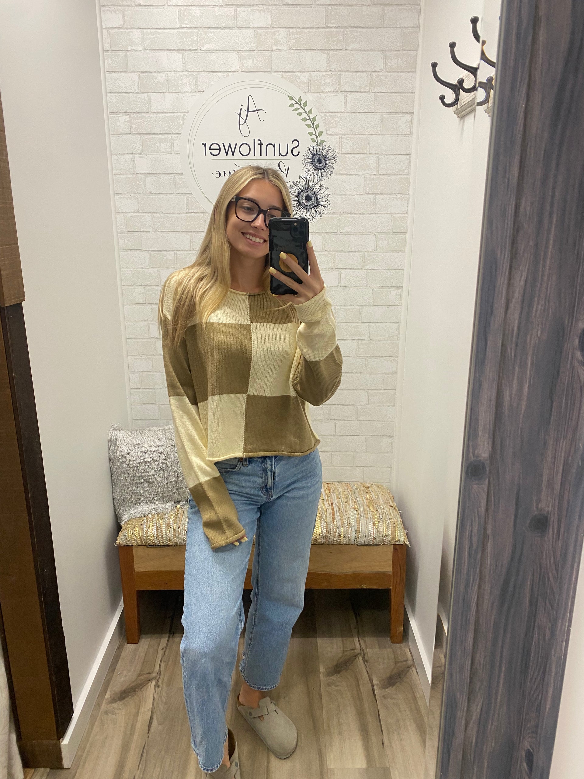 Playful yet perfectly cozy, this checkered sweater brings a pop of pattern to your fall lineup. With its relaxed fit, soft knit, and easy-to-style design, it’s just right for apple orchard strolls, coffee dates, or weekend getaways. Pair it with denim for an effortlessly chic, autumn-ready look..