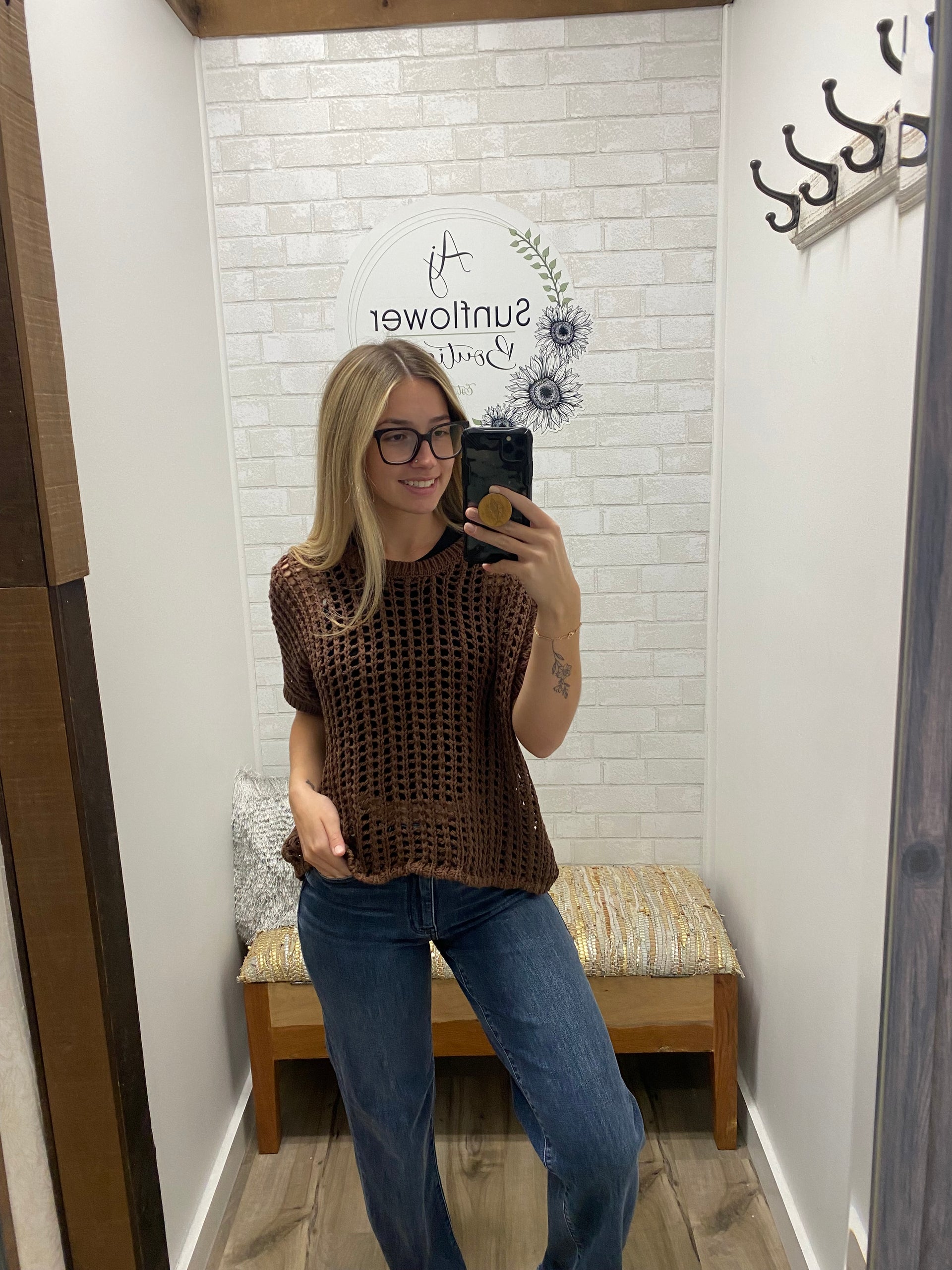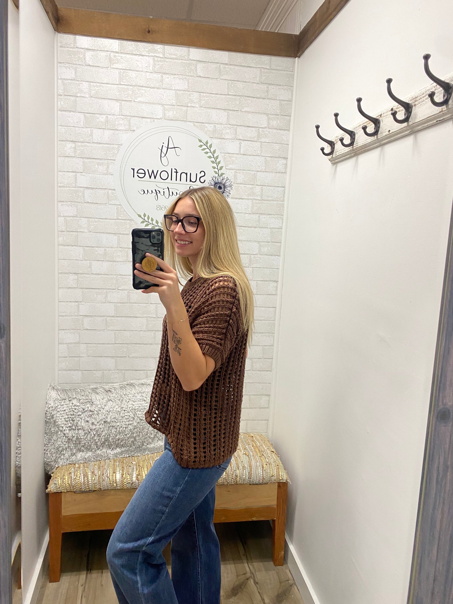 Light as air and effortlessly cool with a fall twist—the Sunset Dunes Top is your go-to for those crisp, sunny autumn days. This open-knit design features a relaxed fit, short sleeves, and a soft texture that layers perfectly over a tank or long sleeve. Pair it with your favorite jeans and boots for coffee runs, fall festivals, or cozy weekends by the fire. It’s that easy, effortless piece you’ll keep reaching for all season long.