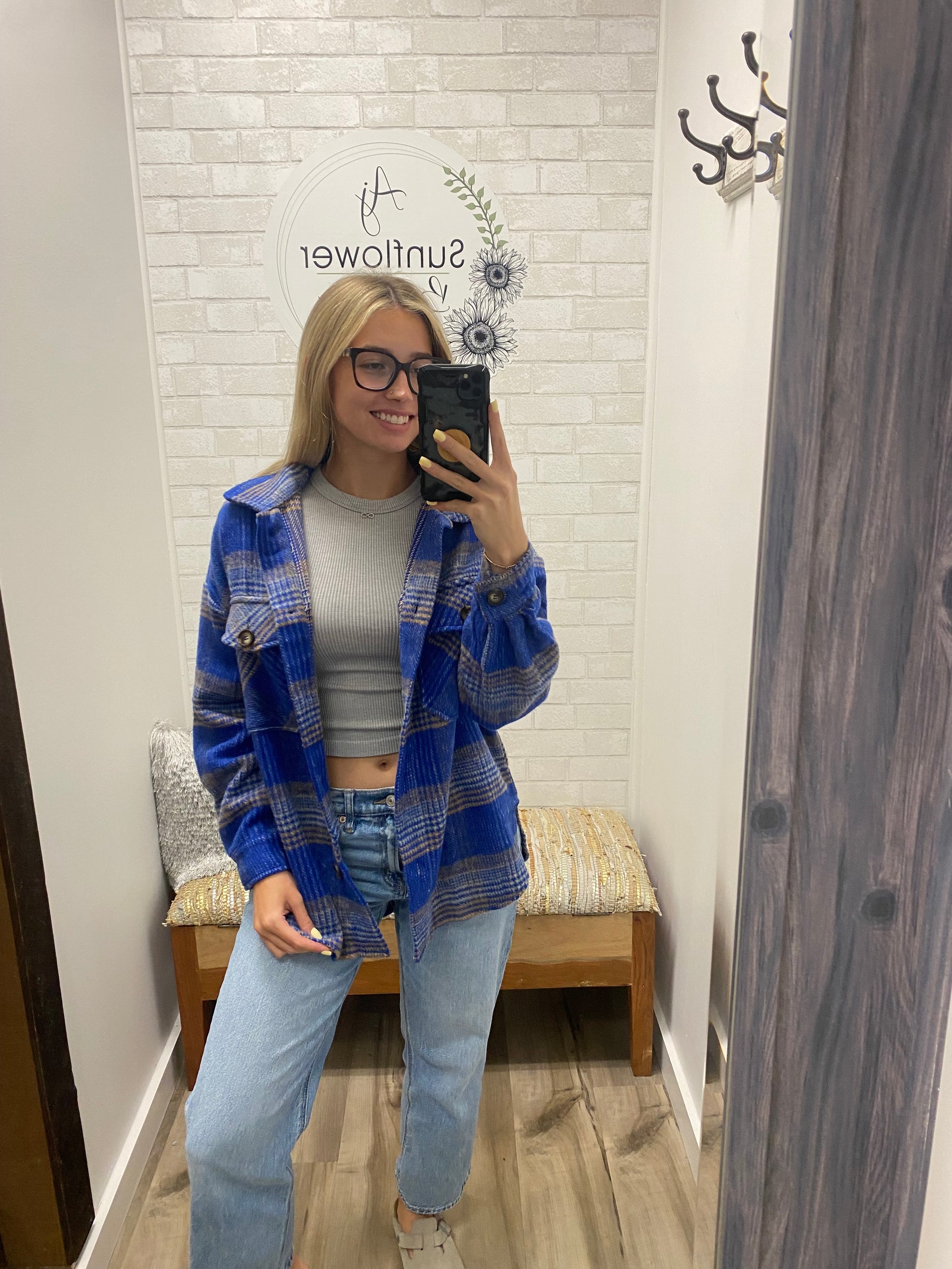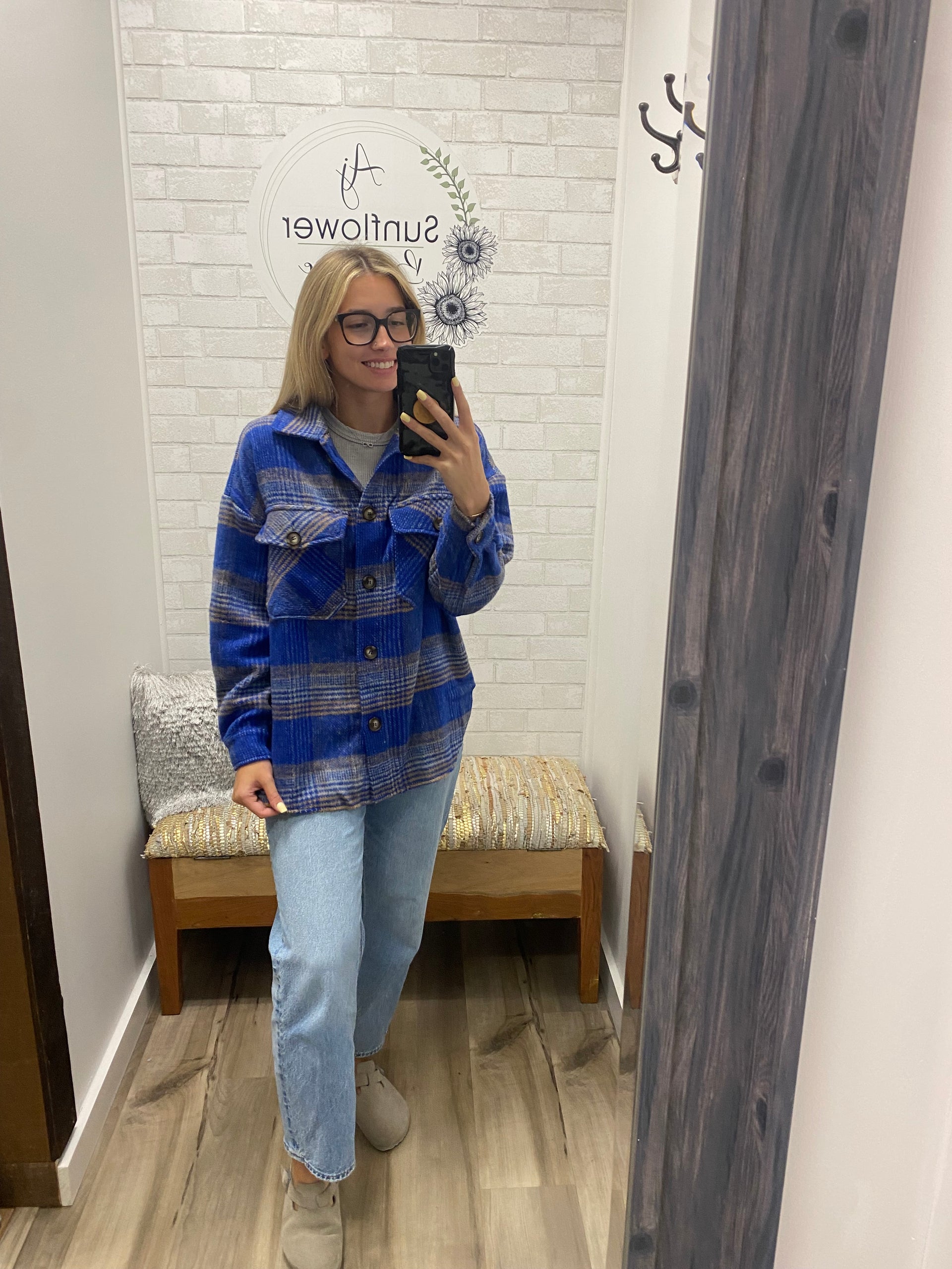 Fall Vibes Plaid Shacket- Taupe/Blue