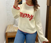 Simple, cute, and so easy to style. The cream knit is soft and cozy, and the red trim gives it just enough holiday detail without going full-Santa. It has a relaxed fit that works with anything — jeans, leggings, even a skirt.