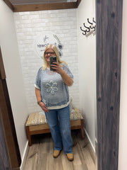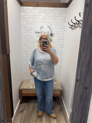 Light, breezy, and a little different—in the best way 🤍 The Coastal Flower Net Sweater has that open-knit feel with soft blue floral details that give it such a pretty, beachy vibe.
