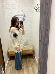 Inspired by breezy nights out east, this crochet sweater features denim star details for that effortless, beachy vibe. Lightweight with a relaxed fit, it’s perfect for layering now and wearing into cooler nights. Just add denim and you’re good to go.