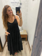 Are you ready to make sparks fly with our latest maxi dress? This tiered dress is the ultimate combination of comfort and style - made from a super soft material that will make you feel like you're walking on clouds. And the best part? It comes in four gorgeous colors - red, tan, black, and blue - so you can choose the one that suits your mood. Whether you're heading to dinner or a casual brunch with friends, this dress will have you looking and feeling your best. So why wait? Get ready to turn heads and make sparks fly with our amazing maxi dress that has POCKETS!