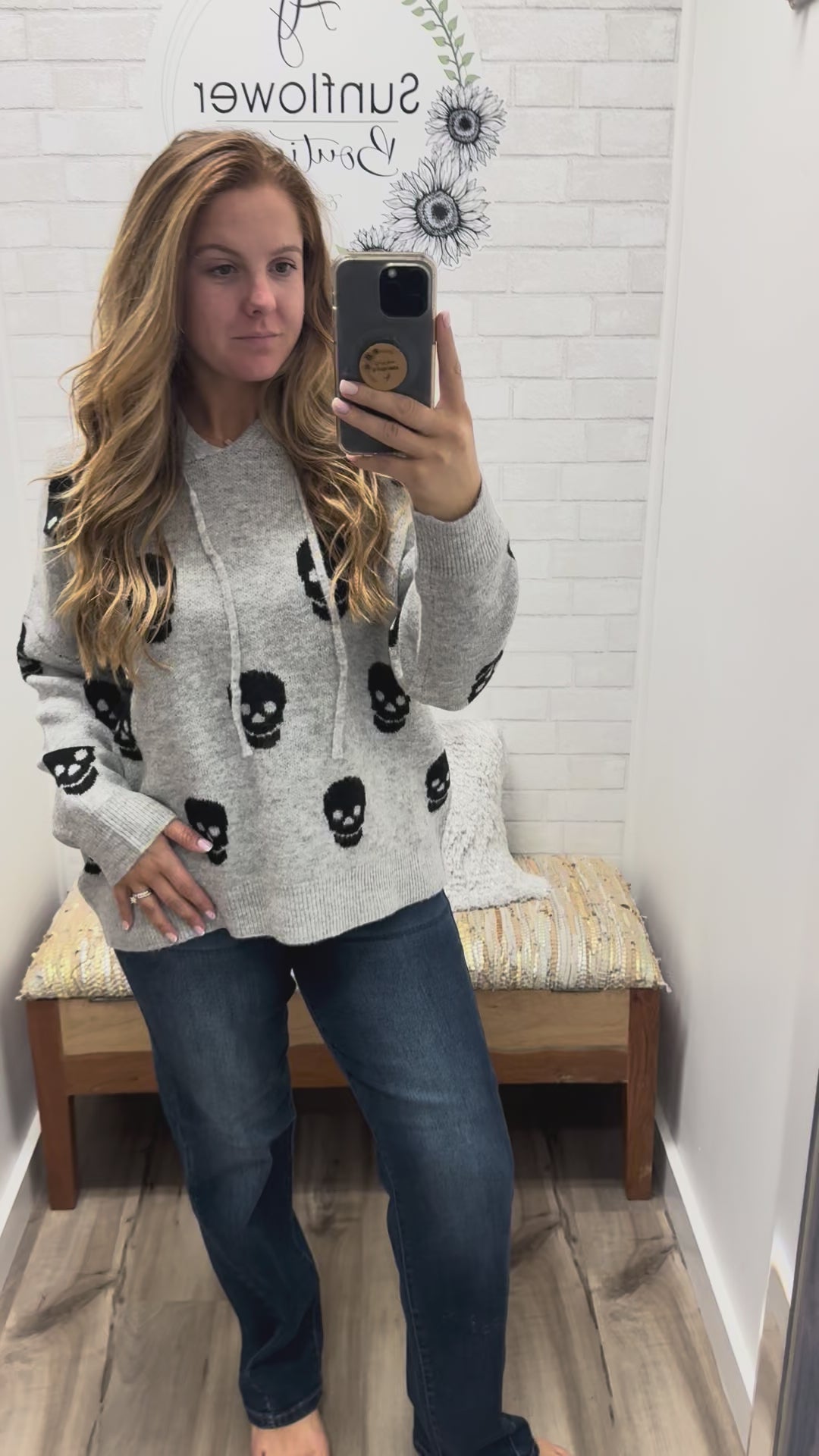Cozy, comfy, and a little rebellious — this skull hoodie was made for your off-duty days. The plush knit, slouchy hood, and easy fit make it the perfect throw-on for chilly nights, pumpkin patch runs, or Sunday lounging.