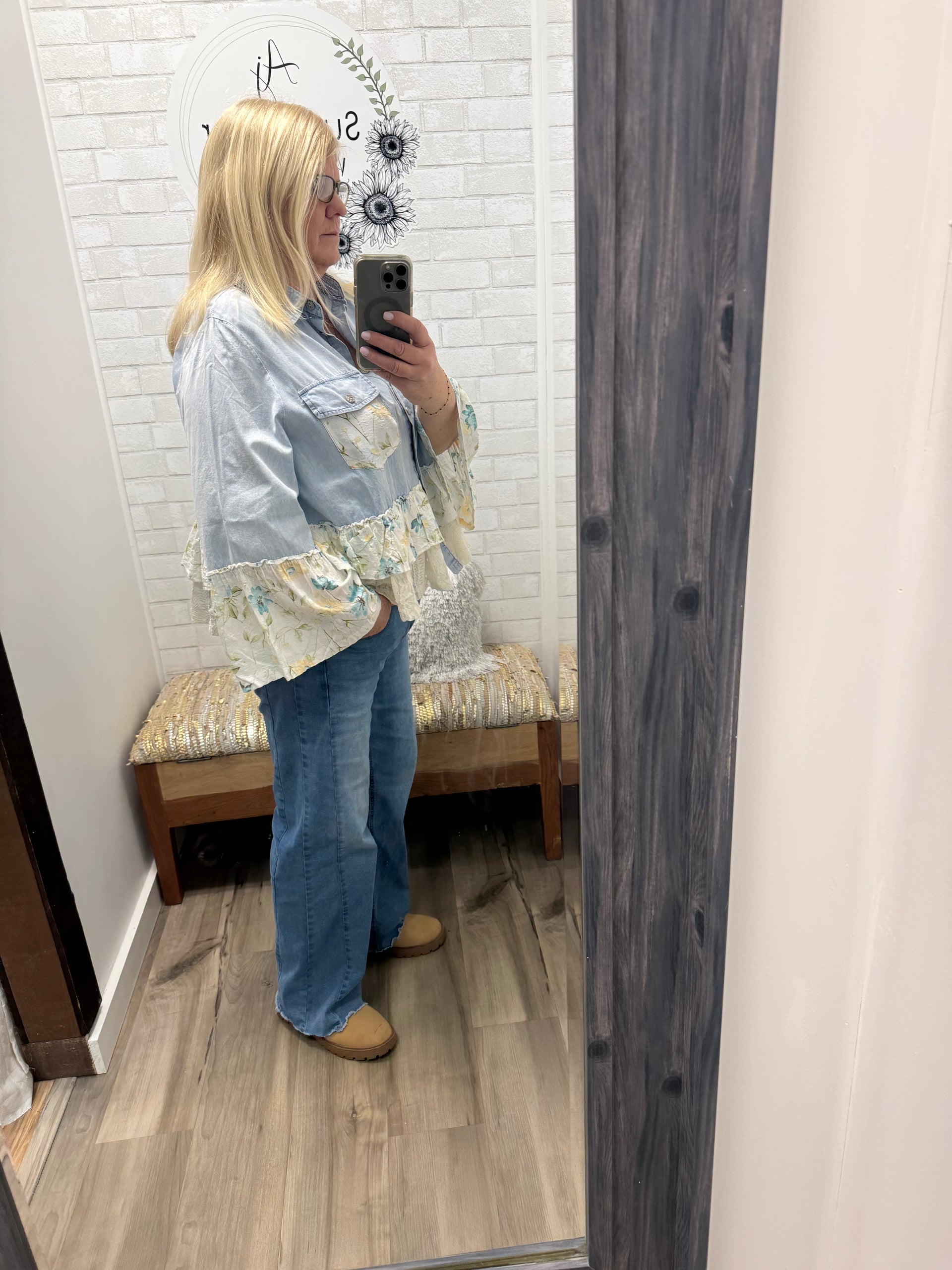 This one is such a fun twist on your everyday denim 💙 The Garden Party Denim Top by POL mixes soft chambray with the prettiest floral patchwork and ruffle details—making it feel feminine, unique, and a little unexpected (in the best way).