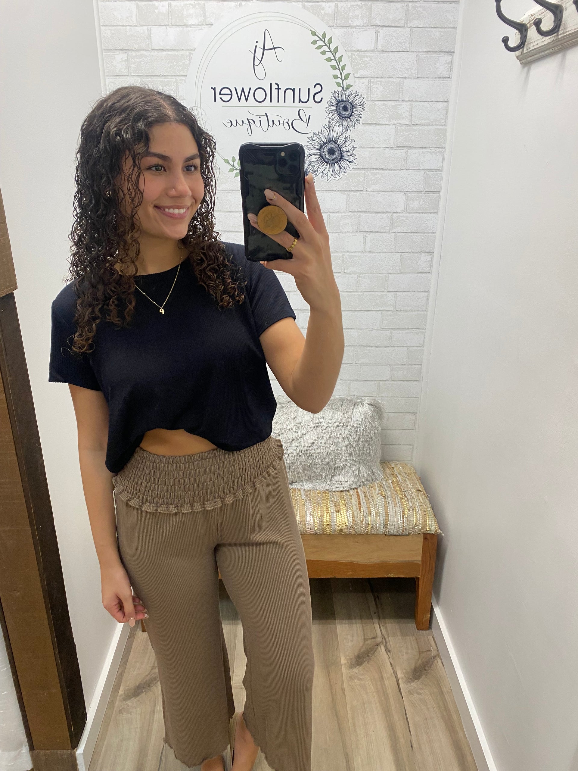 The pant you’ll reach for on school mornings, errand days, and travel days. The smocked waistband is soft and forgiving (yes please), and the wide leg fit gives it that effortless, elevated feel — without sacrificing comfort.