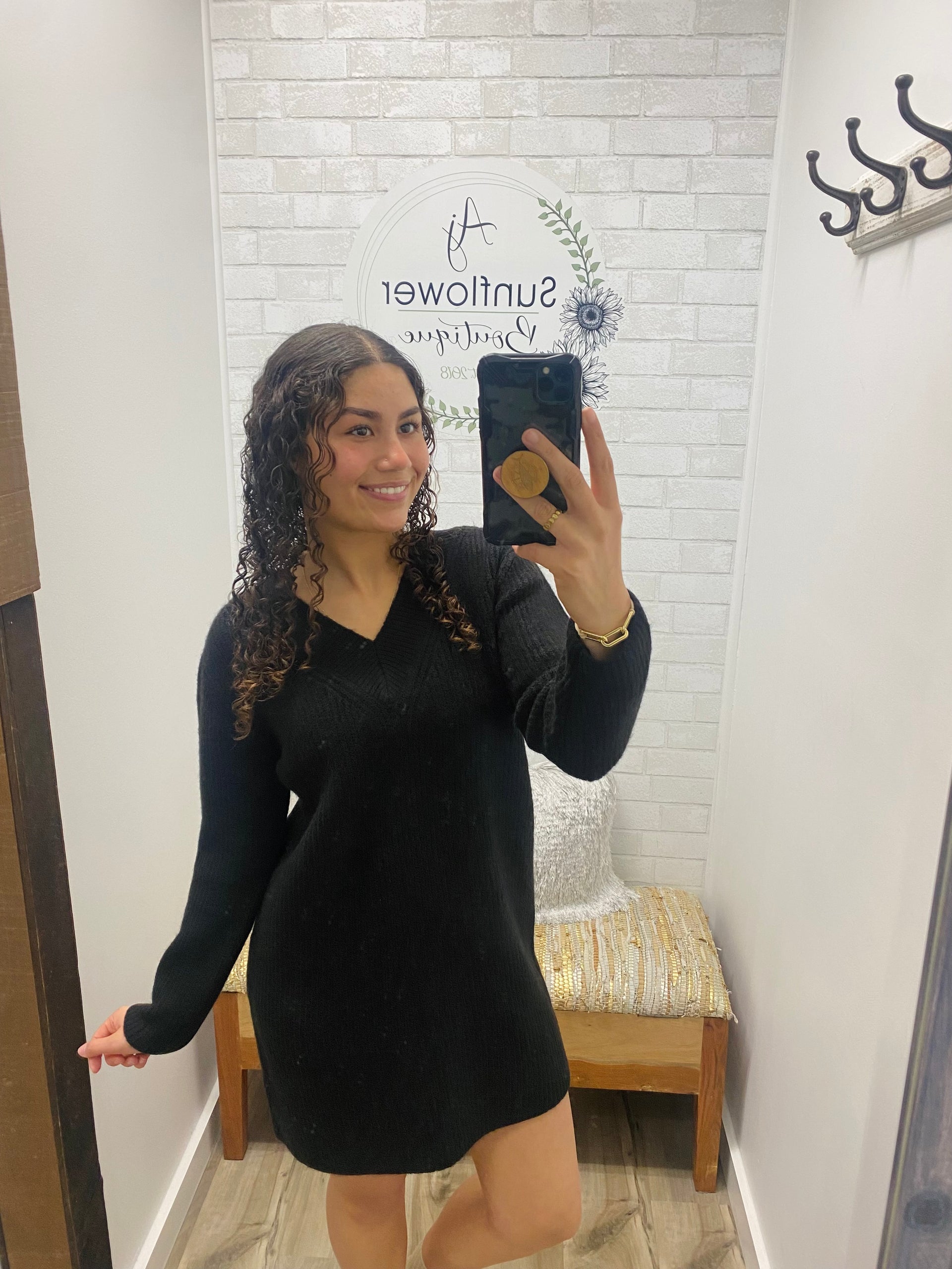 Meet the sweater dress you’ll reach for on every busy, chilly day. The Cozy Chic Sweater Dress is soft, flattering, and effortlessly pulled-together — featuring a relaxed fit, a feminine V-neckline, and that perfect not-too-short length we all love.