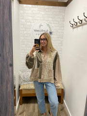 Meet the Autumn Trails Patchwork Jacket by POL — where cozy texture meets effortless cool. This one-of-a-kind layering piece blends quilted panels, soft waffle knit, and earthy tones for that perfectly undone fall look. With its relaxed fit, button front, and mix of fabrics that feel like a favorite from day one, it’s the jacket you’ll reach for on every crisp morning coffee run or weekend adventure.