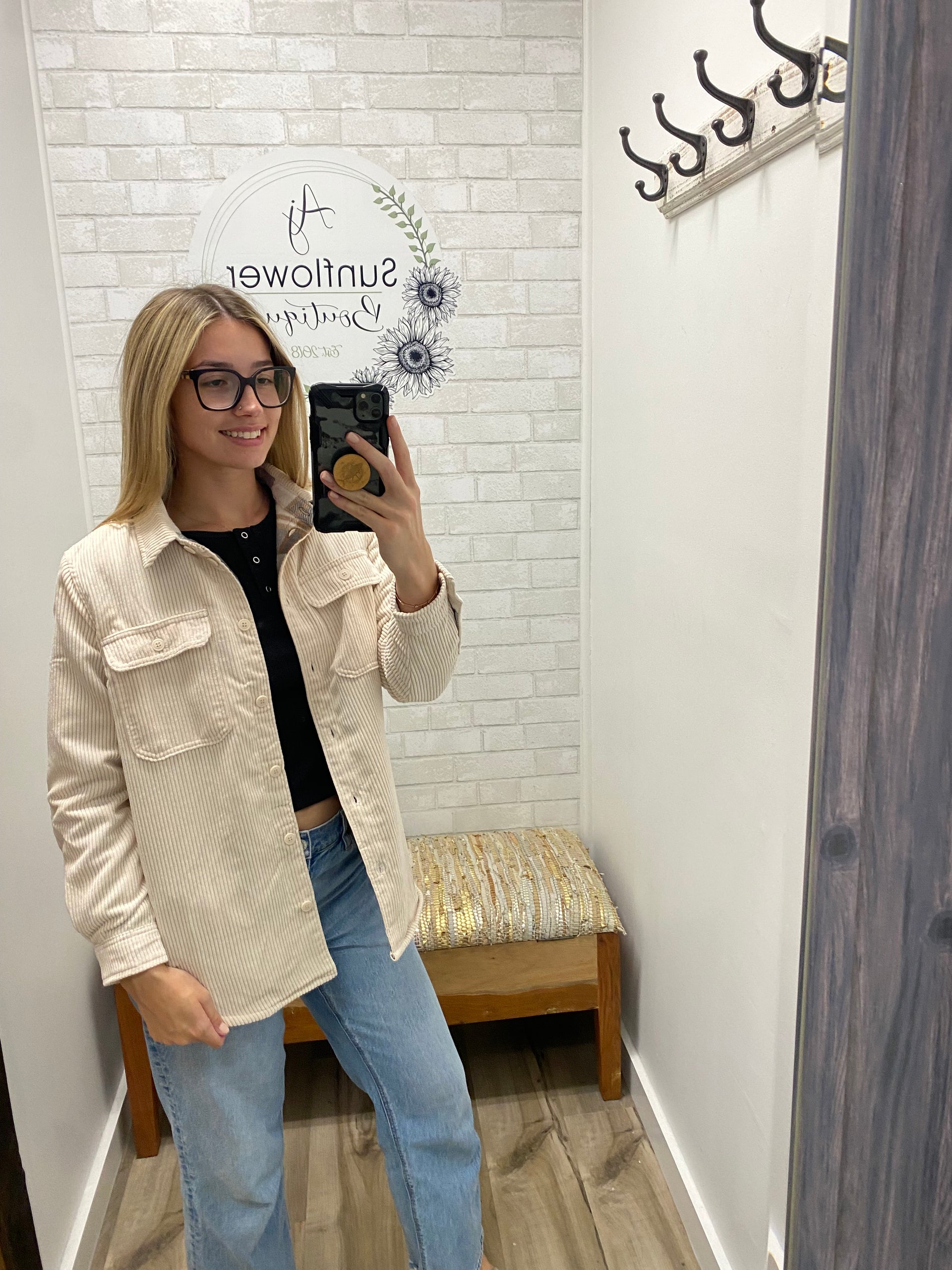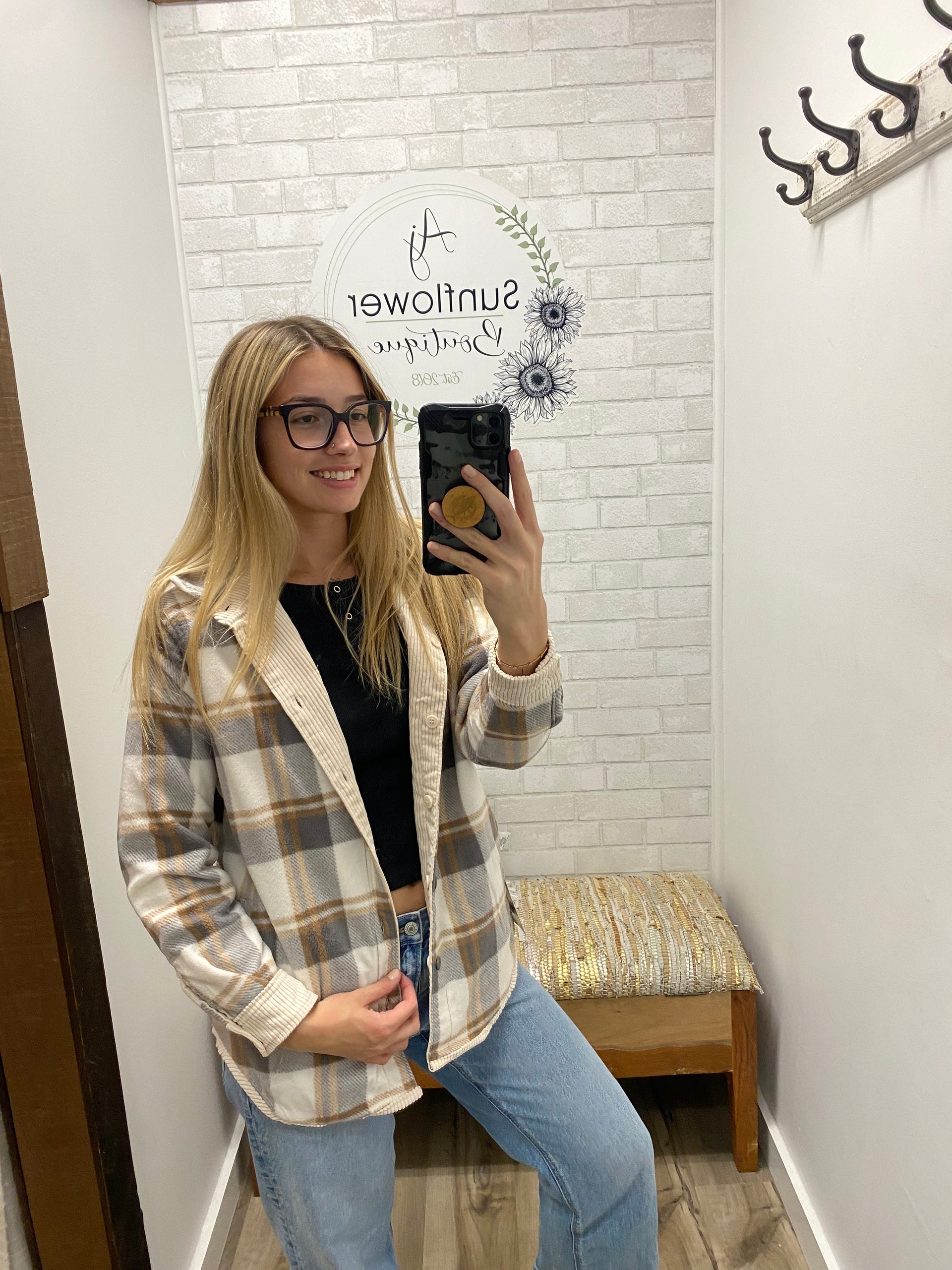 The Cider Trail Shacket is the kind of cozy layer that makes every outfit feel like fall. Soft corduroy on the outside, warm plaid on the inside — basically a hug you can wear. Toss it on over a tee, leggings, or jeans and you’re instantly ready for coffee runs, pumpkin picking, or whatever fall adventure comes your way. It’s cute, comfy, and totally effortless — just how we like it.