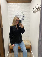 The Harvest Stroll Denim Jacket is your fall go-to for layering with ease. With its relaxed fit, light distressing, and classic button-up design, it’s perfect for cool days spent at the farmers market or casual nights out. Pair it with your favorite sweater or plaid dress for that cozy, effortless look that never goes out of style. Available in both rust and black for two timeless takes on fall layering.