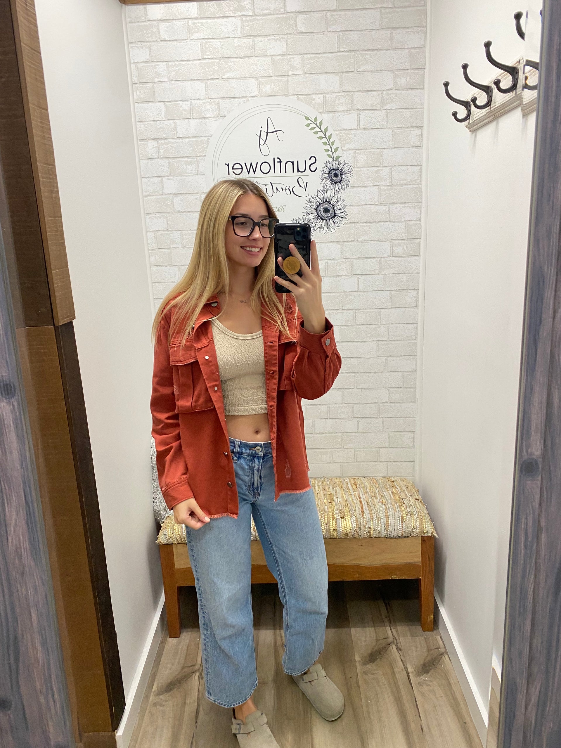 The Harvest Stroll Denim Jacket is your fall go-to for layering with ease. With its relaxed fit, light distressing, and classic button-up design, it’s perfect for cool days spent at the farmers market or casual nights out. Pair it with your favorite sweater or plaid dress for that cozy, effortless look that never goes out of style. Available in both rust and black for two timeless takes on fall layering.