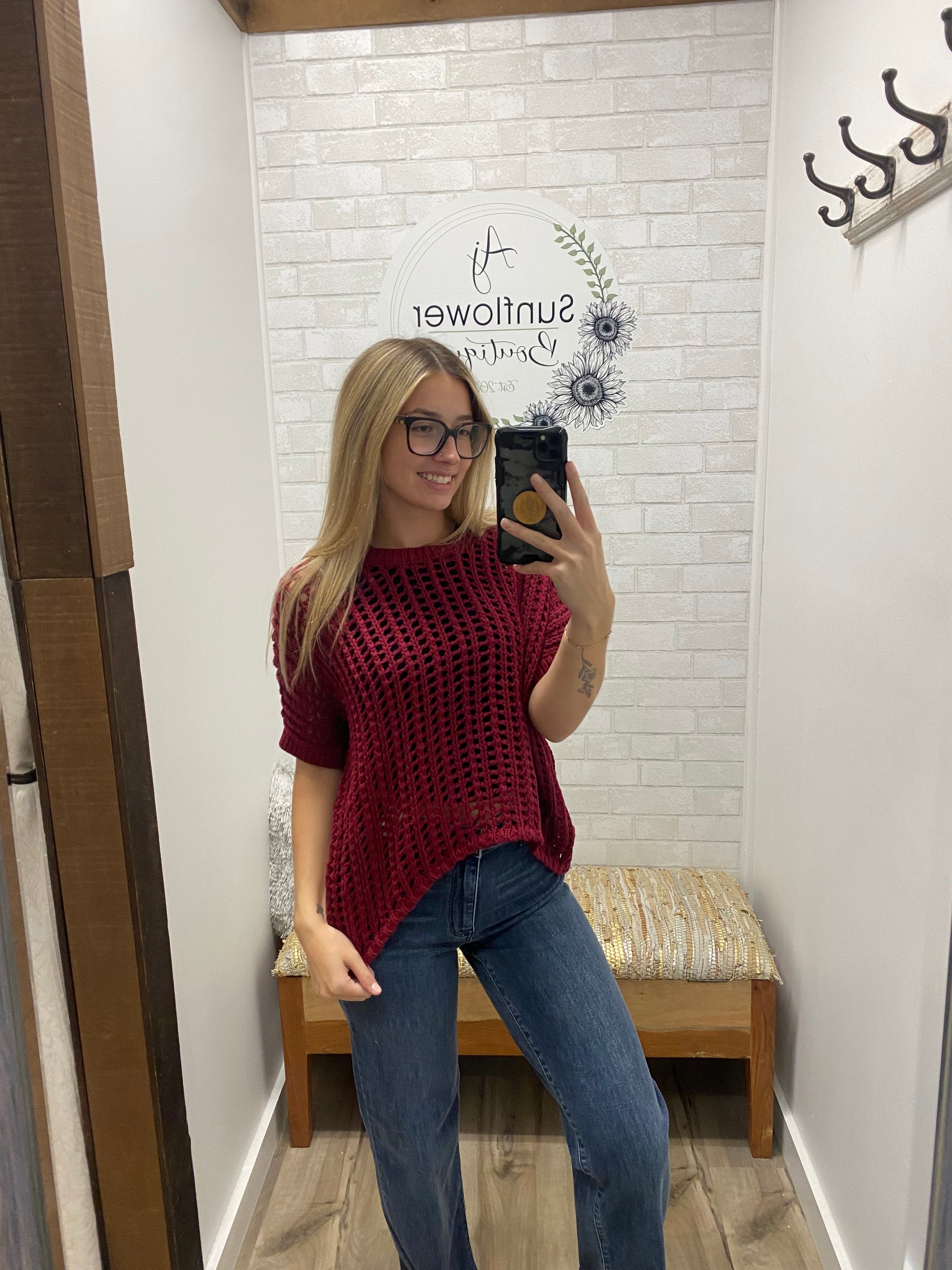 Light as air and effortlessly cool with a fall twist—the Sunset Dunes Top is your go-to for those crisp, sunny autumn days. This open-knit design features a relaxed fit, short sleeves, and a soft texture that layers perfectly over a tank or long sleeve. Pair it with your favorite jeans and boots for coffee runs, fall festivals, or cozy weekends by the fire. It’s that easy, effortless piece you’ll keep reaching for all season long.