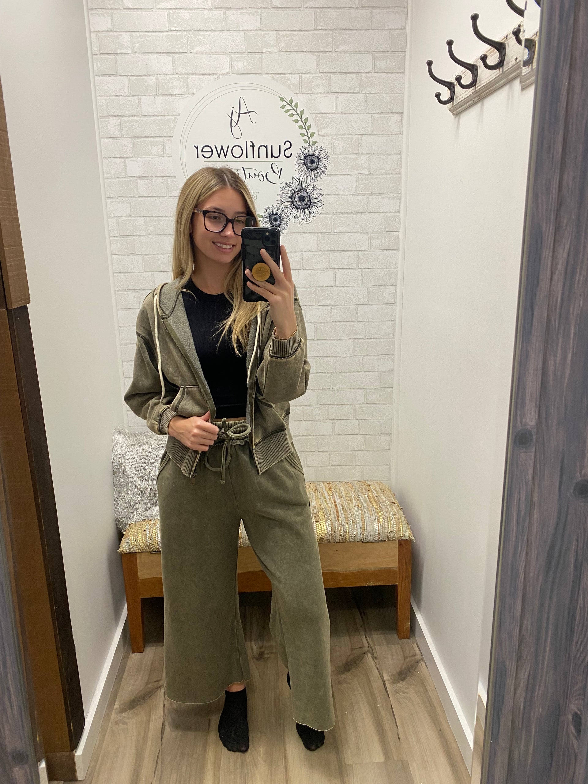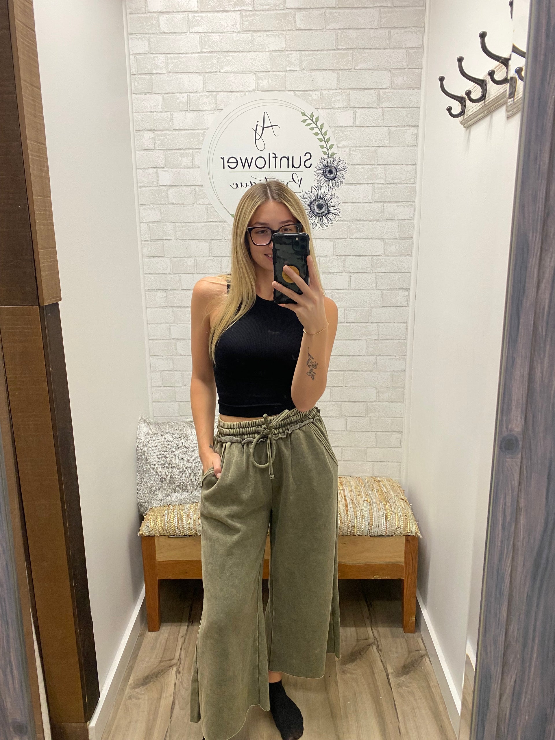 Vintage Vibes Palazzo Sweatpants- Dk Olive